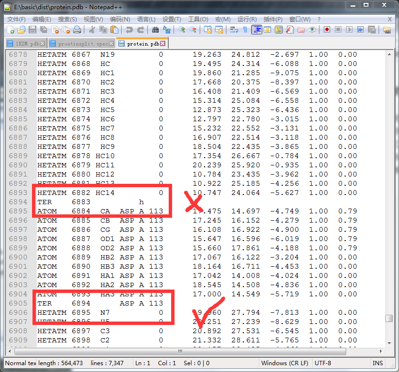 的方式进行切割,所以我们仅需把最前面的蛋白提取,然后依次提取一段以TER分割的配体进去,比较麻烦。