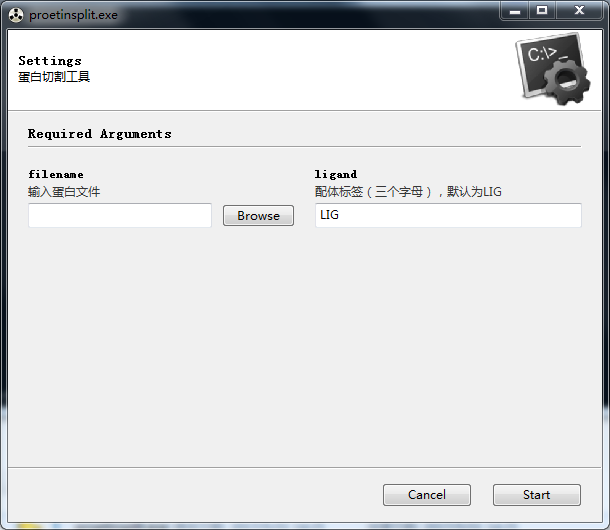 最近采用Python+Gooey快速制作了一个蛋白配体分割工具。界面如图: